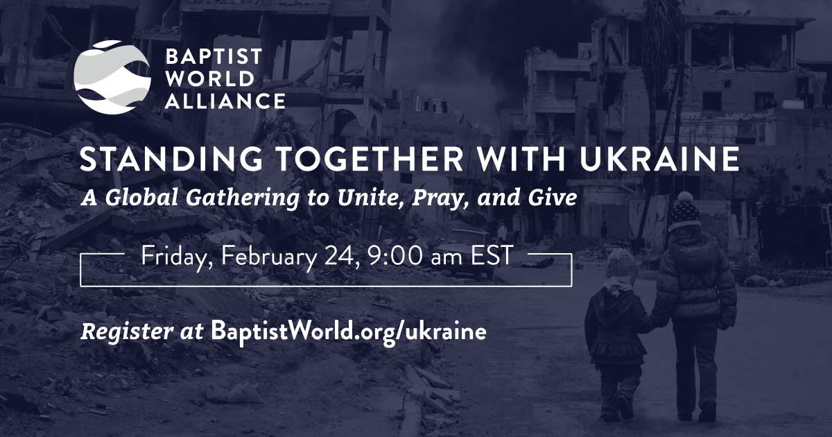 V tento slavnostní den zveme baptisty na celém světě, aby se shromáždili v jednotě, k modlitbám a dávání, abychom prosili Pána za spravedlivý mír a konec této války.