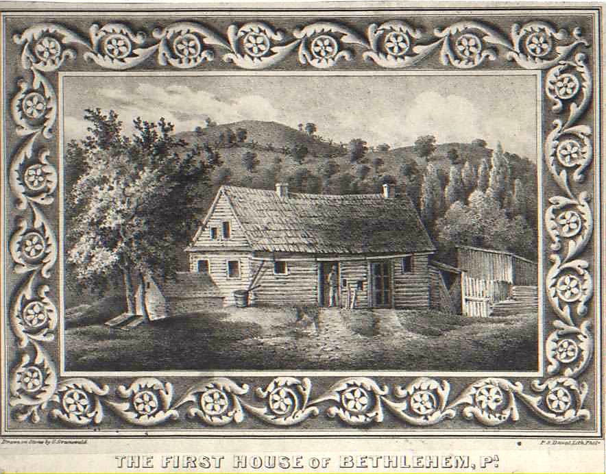 Čtenáři románů z dalekého západu si z dětských let pamatují romanticky popisované příběhy, a je škoda, že pro ně zde není více místa. Zimu přečkali v osadě Nazareth. V jarních měsících roku 1741 se věnovali úpravě 500 akrů pozemků, které zakoupili na řece Lehigh, asi 15 km na jih od Nazarethu. Položení základů velkého domu 28. června je považováno za založení Bethlehemu, významného střediska Jednoty bratrské, dnes univerzitního města s ocelářským průmyslem.