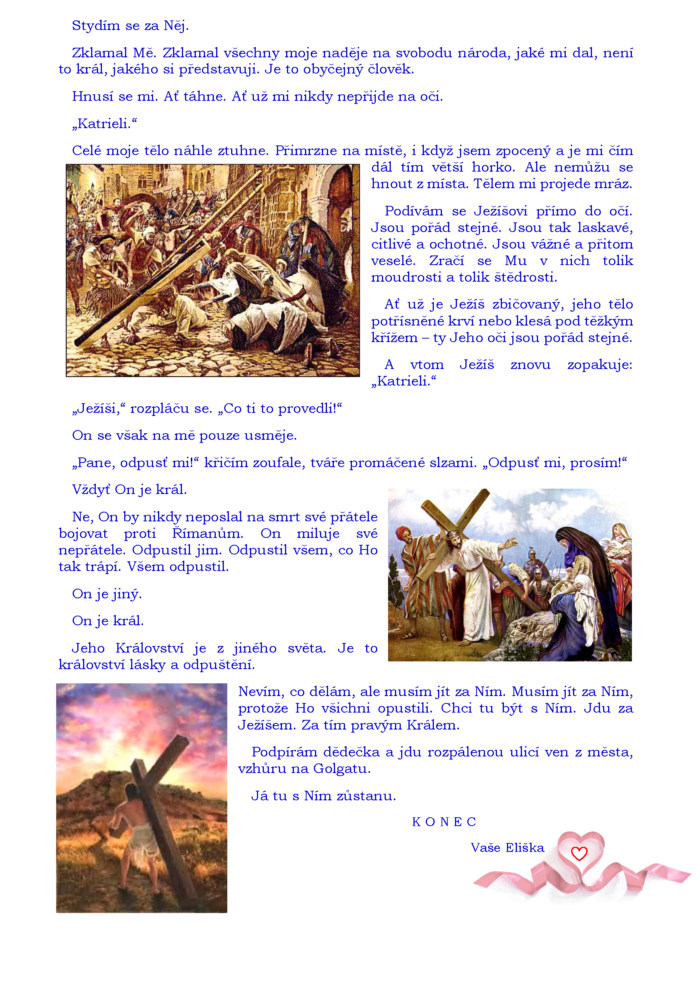 Milé děti, velikonoční povídku Velikonoční pátek pro vás napsala čtrnáctiletá Eliška Hrůzová. Můžete spolu s ní a s pastýřem Katrielem prožít chvíle, které se odehrávaly o Velikonočním pátku. Věřím, že si povídku rády přečtete.