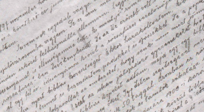 Výňatek ze zprávy Jenő Menyhért Stumpfa (1878-1929) o misijních začátcích baptistické práce v Mukačevu na podkarpatské Rusi z roku 1899.