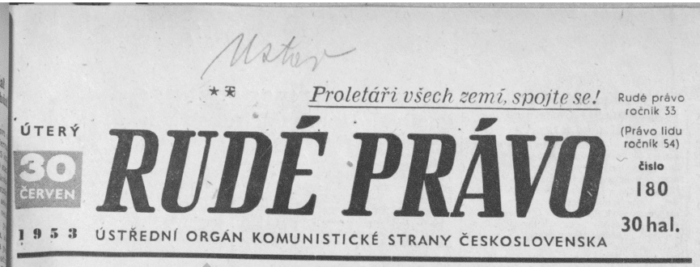 noviny Rudé právo, č. 180, ročník 33, úterý 30. června 1953, str. 3