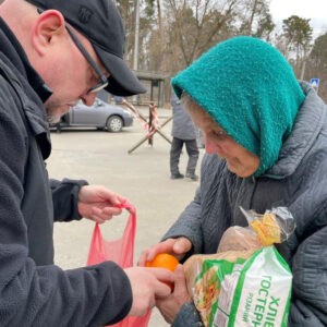 Kazatel rozdává chléb starým lidem na Ukrajině a modlí se, aby si zachoval lidskost